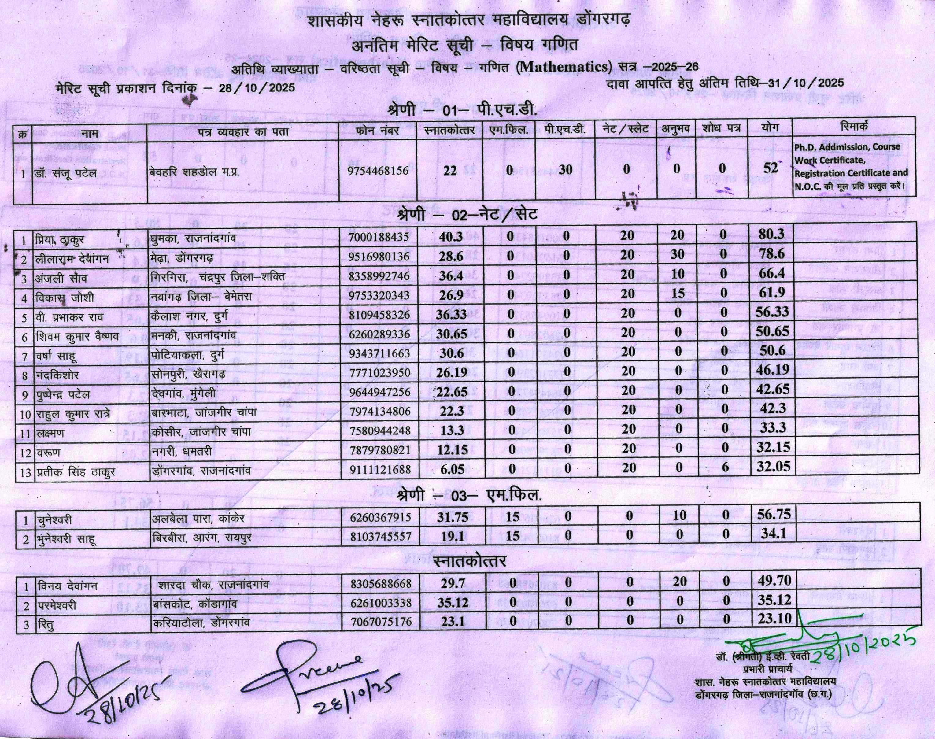 शासकीय नेहरू स्नातकोत्तर महाविद्यालय डोंगरगढ़ (छत्तीसगढ़) द्वारा अतिथि व्याख्याता भर्ती 2025 के लिए आयोजित चयन प्रक्रिया का परिणाम (Result) अब जारी कर दिया गया है।